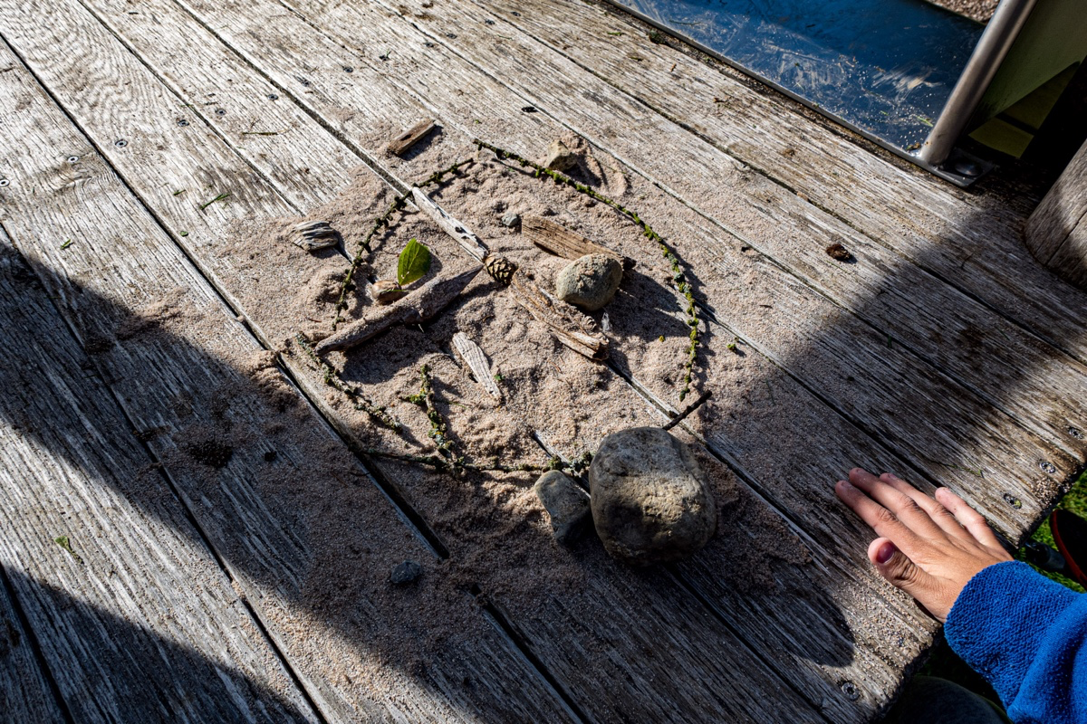 La première activité, à l’extérieur, consiste à créer une oeuvre d’art avec des objets naturels trouvés aux alentours du chalet. Chaque chambre ruse de créativité pour présenter une oeuvre la plus insolite possible.